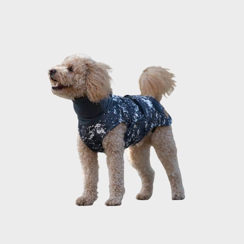 Un manteau facile à enfiler, à ajuster, résistant à l’eau et au design tendance ? Ne cherchez plus, nous avons le manteau qu’il vous faut ! Le manteau pour chien motif « the splash » a été conçu pour garder votre chien au chaud. Confectionné à partir de ouate recyclée et doublé de polaire, son imprimé moderne et chic fera des envieux lors de vos promenades !