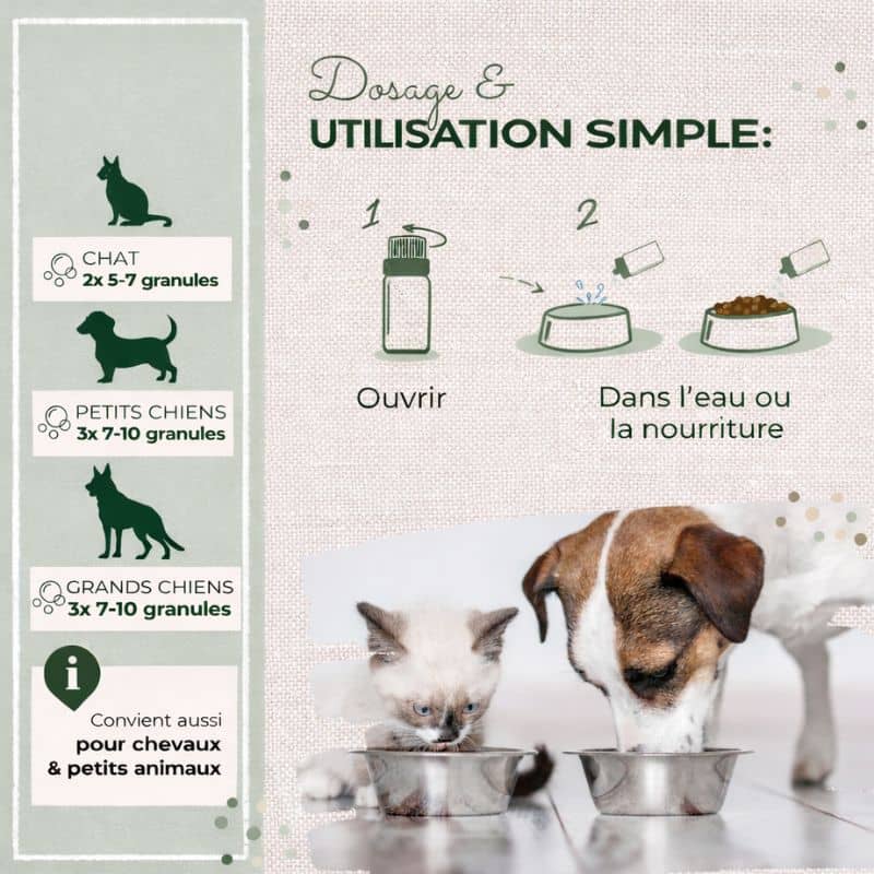 Chats : 5-7 granules 2 fois par jour