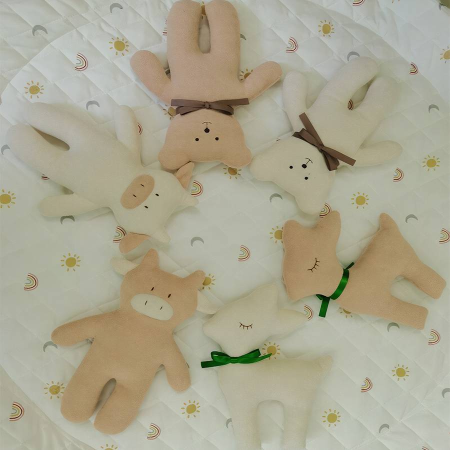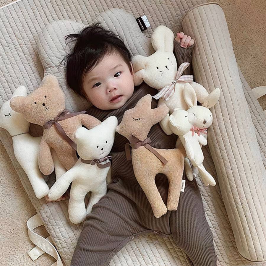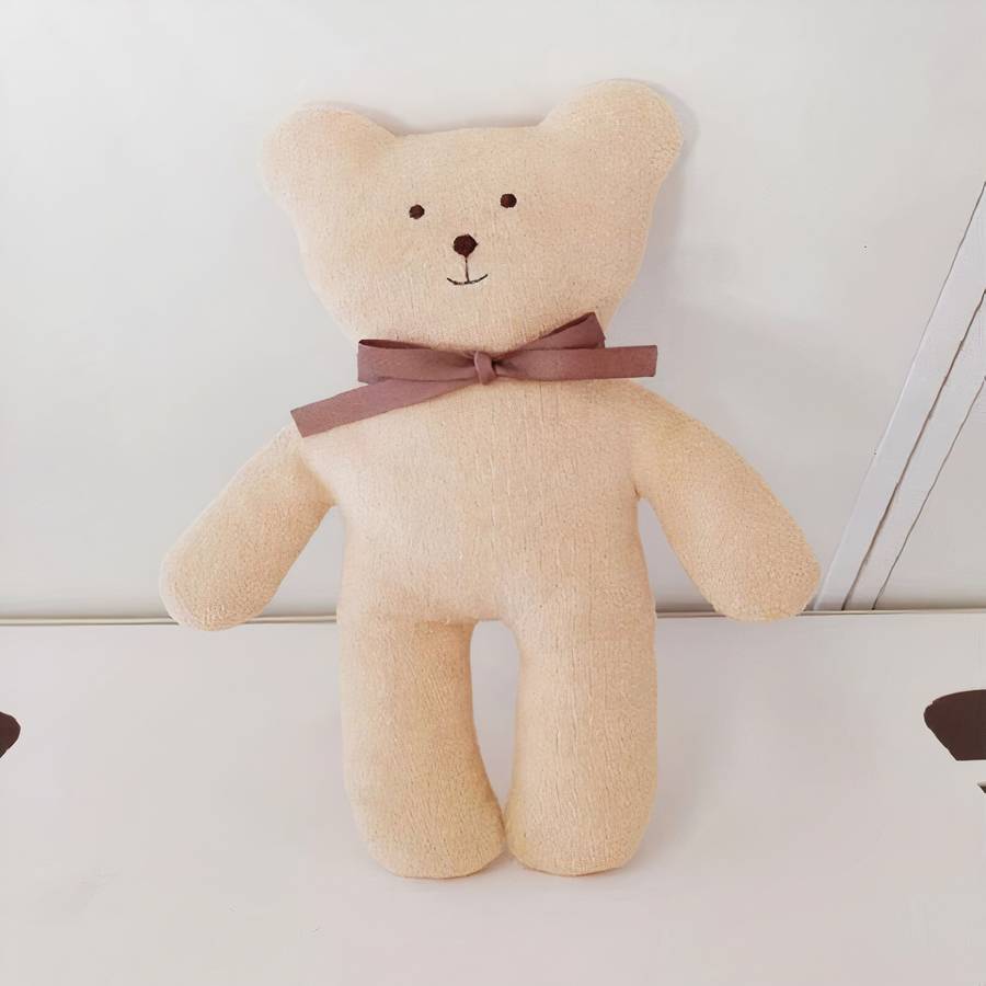 Nous sommes ravies de vous présenter ce mignon ourson en peluche pour bébé, cet ourson en peluche pour bébé est très polyvalent. Non seulement il peut être utilisé comme un jouet, mais aussi comme un oreiller douillet que votre petit adorera se blottir contre lui au moment du coucher. Il est rempli de matières douces et moelleuses qui procurent à votre bébé une sensation de confort et de sécurité. Son design élégant et intemporel fera plaisir à votre bébé pendant des années.