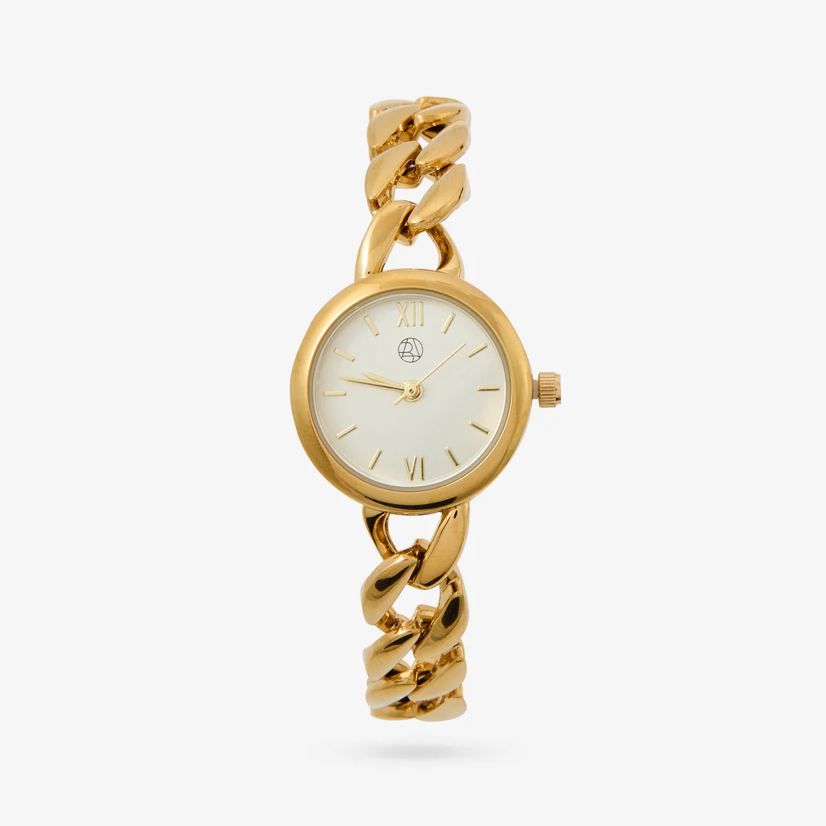 Montre cadran rond, fond blanc, bracelet à maillons