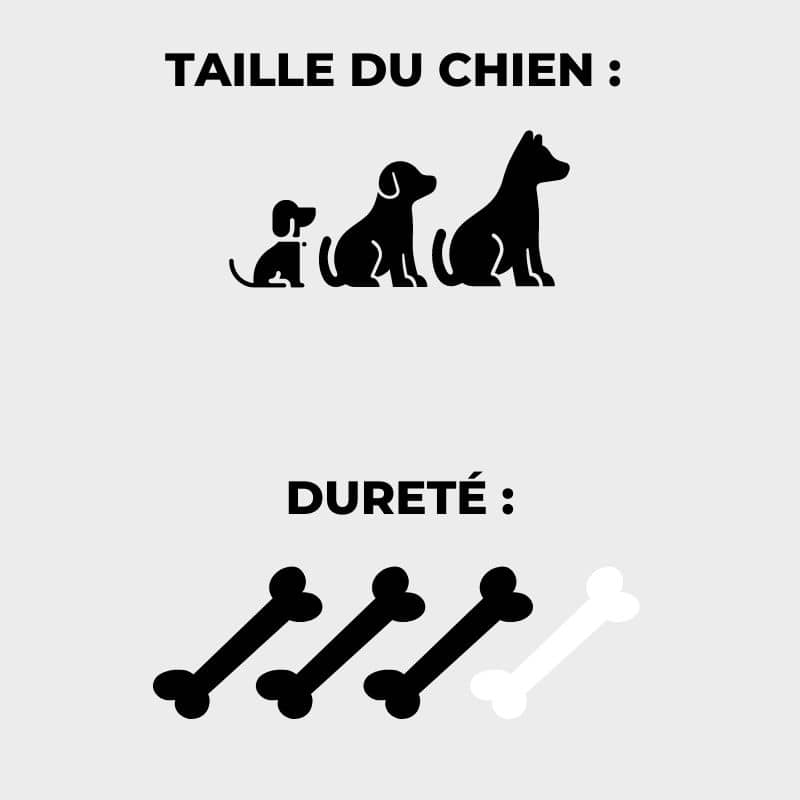 Une gourmandise saine (faible teneur en graisse) et longue durée pour les chiens de taille moyenne à grande.