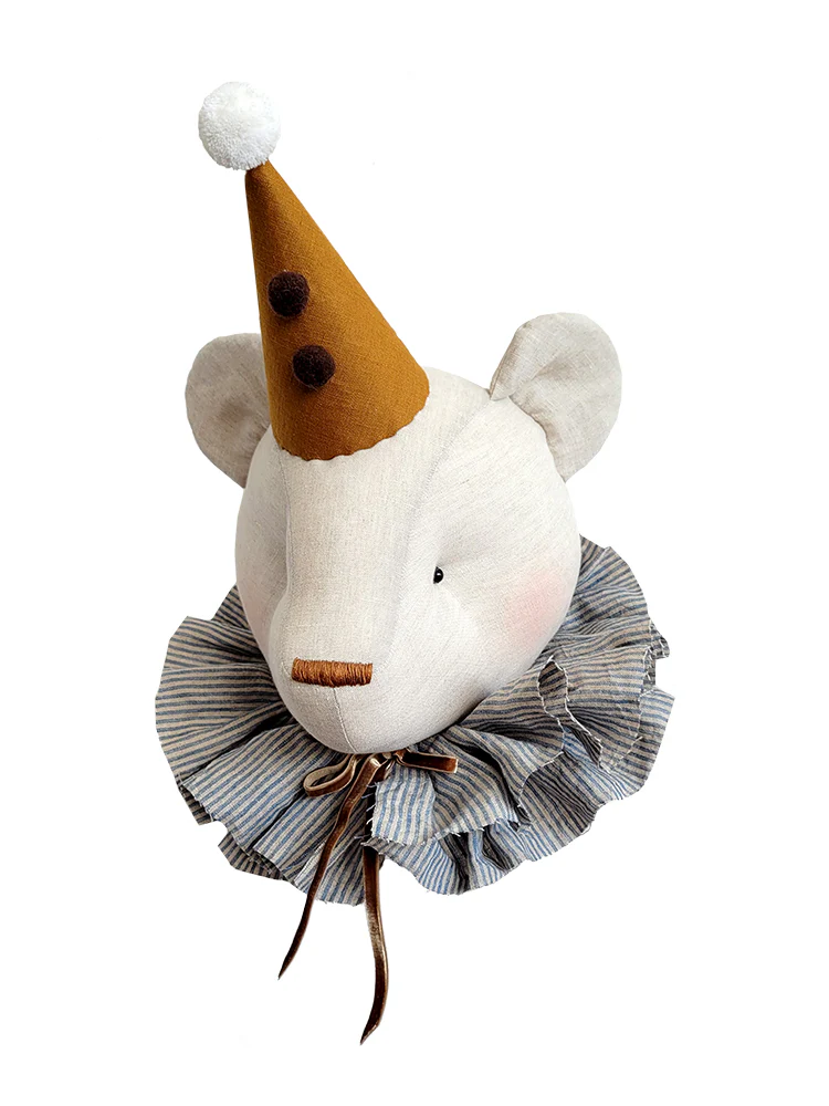 Et si la chambre de votre enfant était un royaume féérique où cohabitent des créatures hors du commun ? Comme sorti d’un conte, ce très élégant ours en lin beige coiffé de son chapeau couleur ocre apportera originalité et caractère à la chambre de votre enfant avec son habit de cirque. Un personnage attendrissant pour une chambre empreinte de magie, d’imaginaire et d’évasion. Cette décoration murale peut aussi se poser sur la commode de la chambre ou dans le lit comme compagnon de chambre 😉