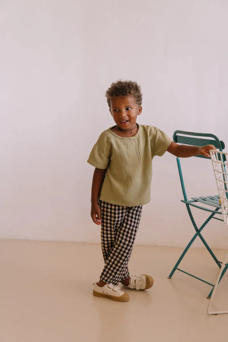 Pantalon large mixte confortable en gaze de coton biologique.