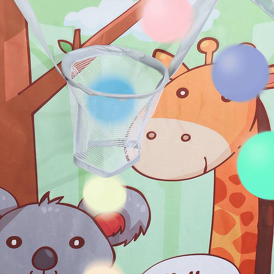 Ce parc de jeux piscine à balles pour bébé avec décor savane est l’endroit idéal pour les plus petits. Avec ses couleurs vives et ses motifs d’animaux, il offre une atmosphère amusante et stimulante pour votre enfant.