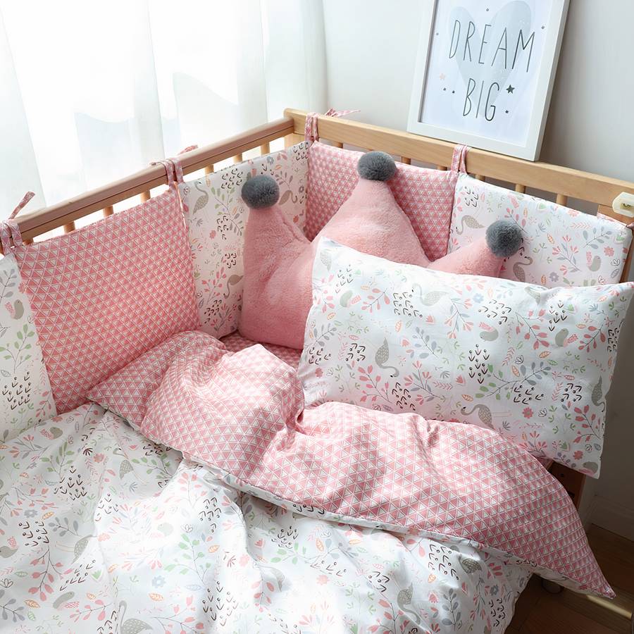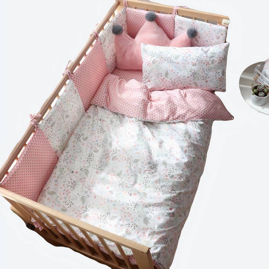 Nous vous proposons cette parure de lit en coton doux pour bébé, elle est composée de pare-chocs et de linge de lit pour le berceau de votre enfant. Elle est douce au toucher et accueille chaleureusement la peau délicate de votre petit bout de chou.