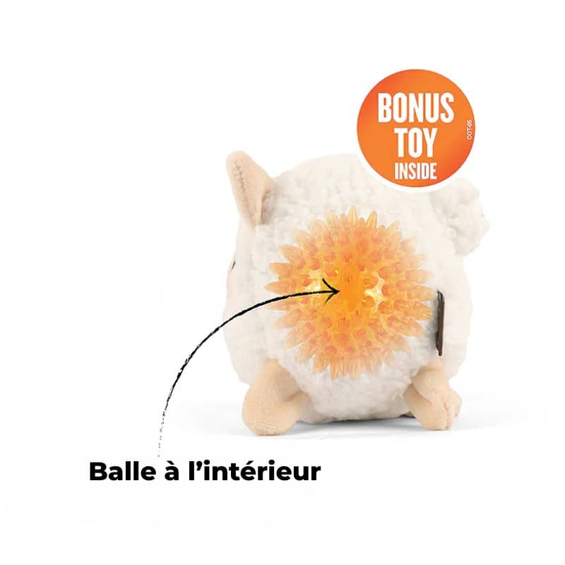 Ce jouet pour chien en forme de cochon “Sadie The Sheep” 🐷 PLAY fait partie de la collection Barnyard Buddies, des compagnons de jeu ferme-ment irrésistibles pour votre chien ! Il contient une balle à picots parfaite pour jouer à rapporter la « baballe » avec votre poilu et qui renforcera votre complicité. La balle à picots contient un pouic pouic qui stimulera le poilu pendant des heures de jeu.