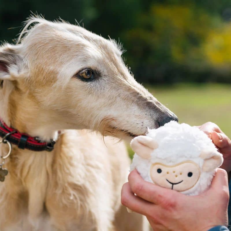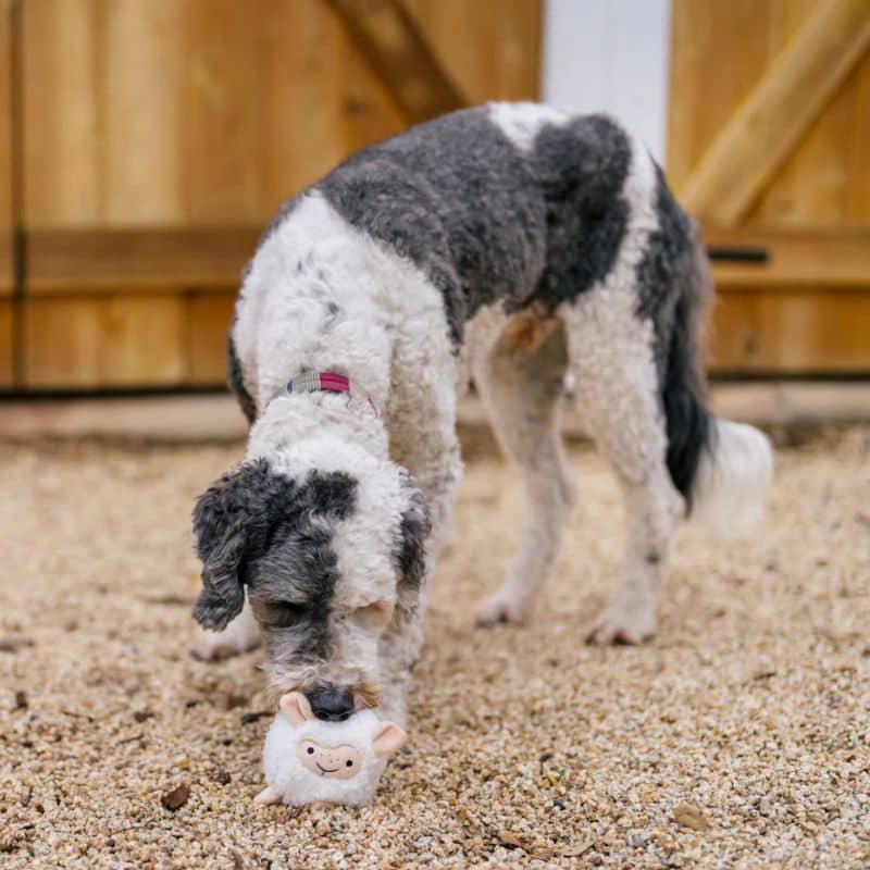 PELUCHE AVEC BALLE PICOTS POUR CHIEN – MOUTON 🐑