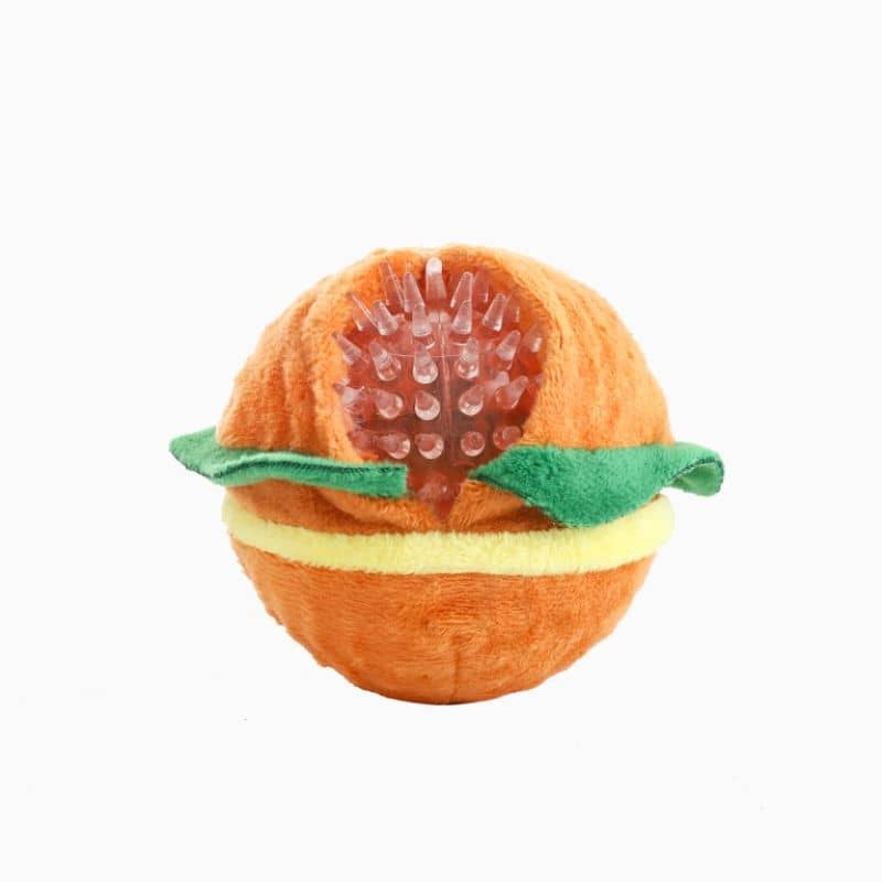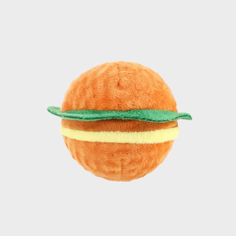 PELUCHE AVEC BALLE POUR CHIEN – HAMBURGER 🍔