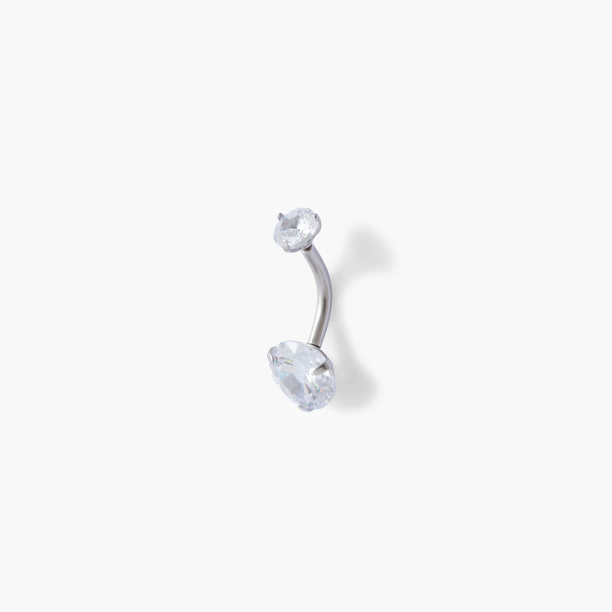 Piercing stud pour nombril argenté double strass de zirconium