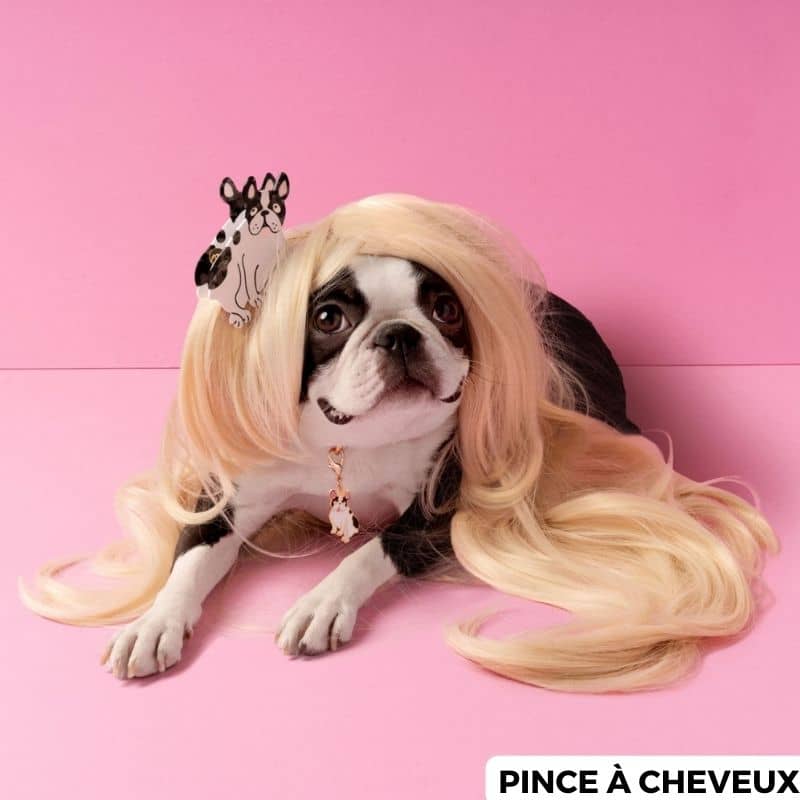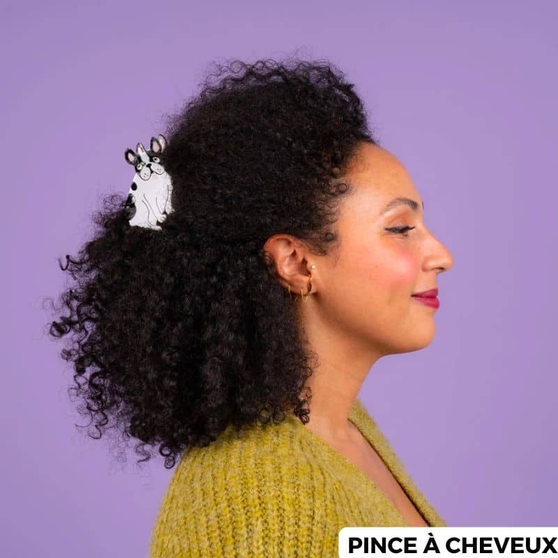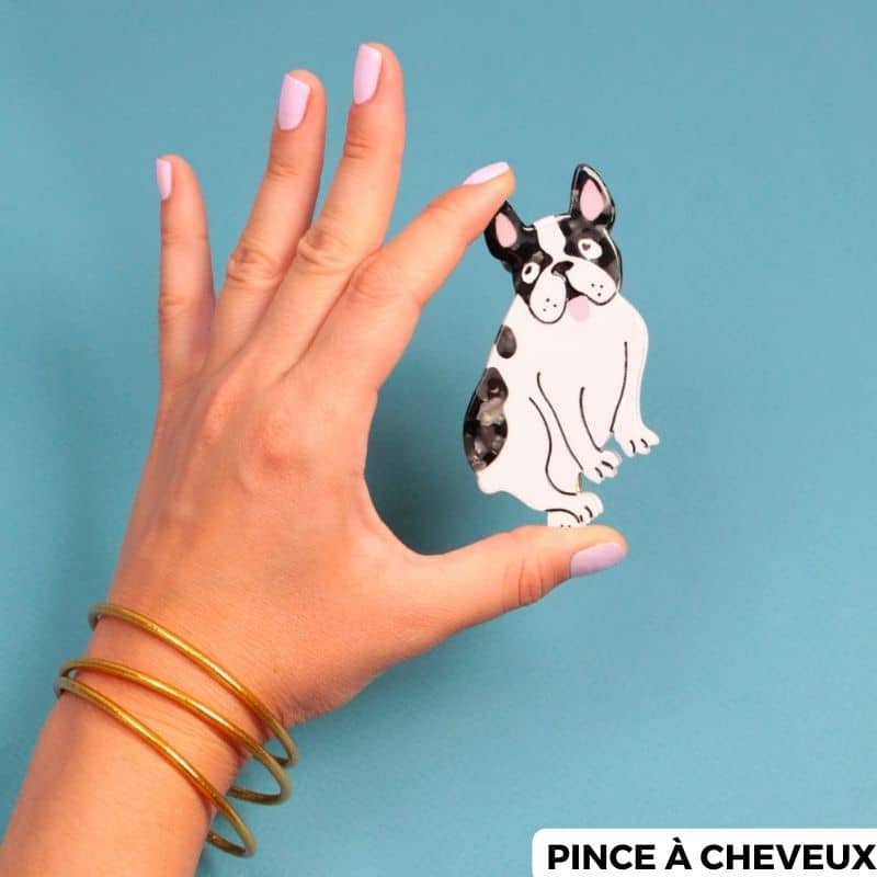 Avec sa petite langue rose qui pend et sa façon de s’asseoir si particulière, on ne peut que tomber sous le charme de ce bouledogue avec son regard tout mignon ! Un bouli à emporter partout grâce à la pince à cheveux bouledogue français de la marque Coucou Suzette !
