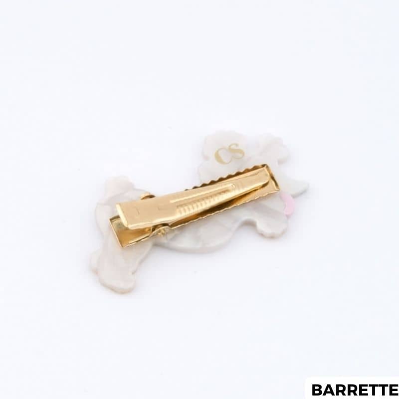 Qu’elle est élégante la pince à cheveux caniche de la marque Coucou Suzette ! Avec sa couleur blanche, son effet nacré, ses détails dorés et rose, cette pince a tout pour plaire. Un accessoire original pour donner du peps à votre coiffure qui se décline en pince à cheveux crabe ou en petite barrette.