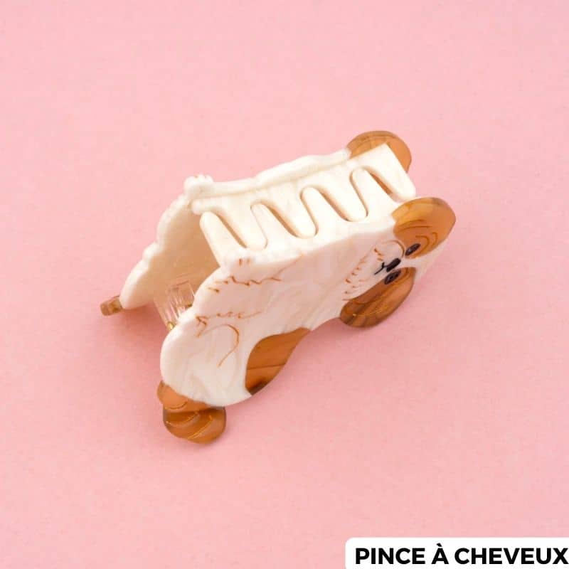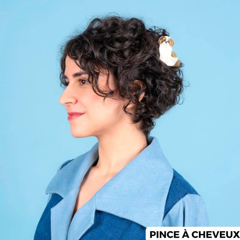 Qu’elle est mignonne la pince à cheveux shih tzu de la marque Coucou Suzette ! Avec sa couleur blanche nacrée et ses détails dorés, cette pince a tout pour plaire. Un accessoire original pour donner du peps à votre coiffure qui se décline en pince à cheveux crabe ou en petite barrette.