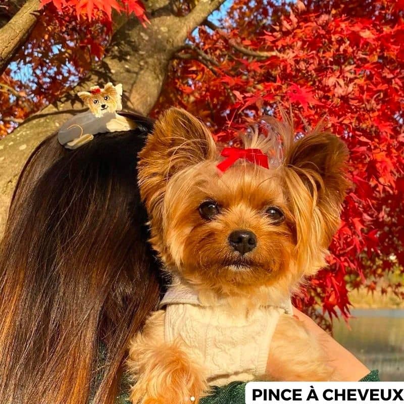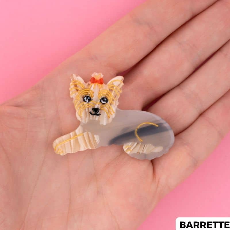 Qu’elle est mignonne la pince à cheveux yorkshire de la marque Coucou Suzette ! Avec son effet nacré, ses détails dorés et rouge, cette pince a tout pour plaire. Un accessoire original pour donner du peps à votre coiffure qui se décline en pince à cheveux crabe ou en petite barrette.