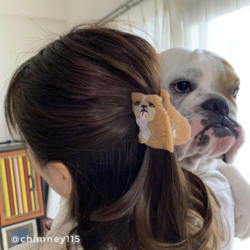 Avec sa petite langue rose qui pend et son air tristounet, on ne peut que tomber sous le charme de ce bouledogue anglais avec sa bouille trop mignonne ! Un bouli à emporter partout grâce à la pince à cheveux bouledogue anglais de la marque Coucou Suzette !