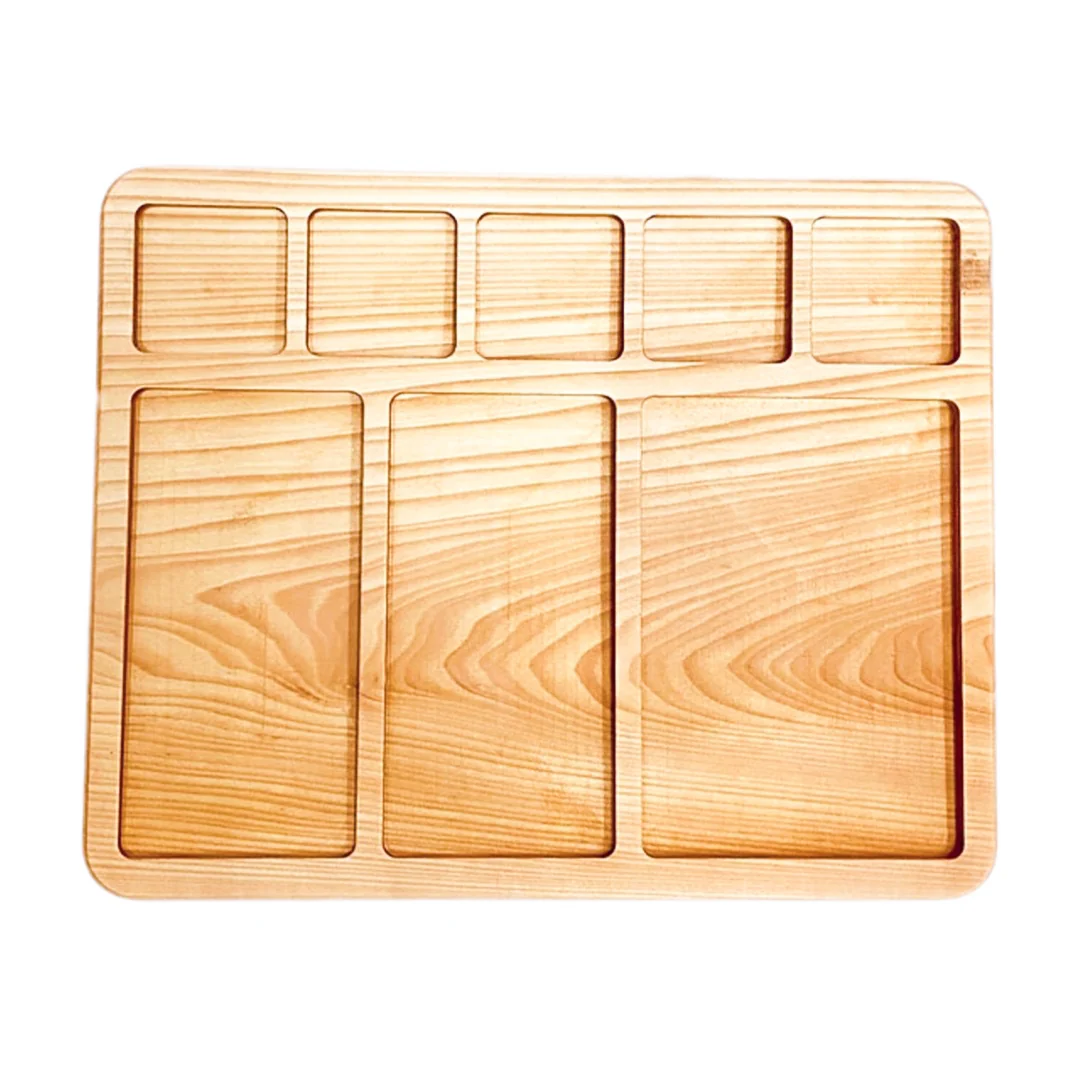 Plateau de calcul à compartiments. A utiliser avec nos sets de cubes en bois de chiffres et signes mathématiques (vendu à part).