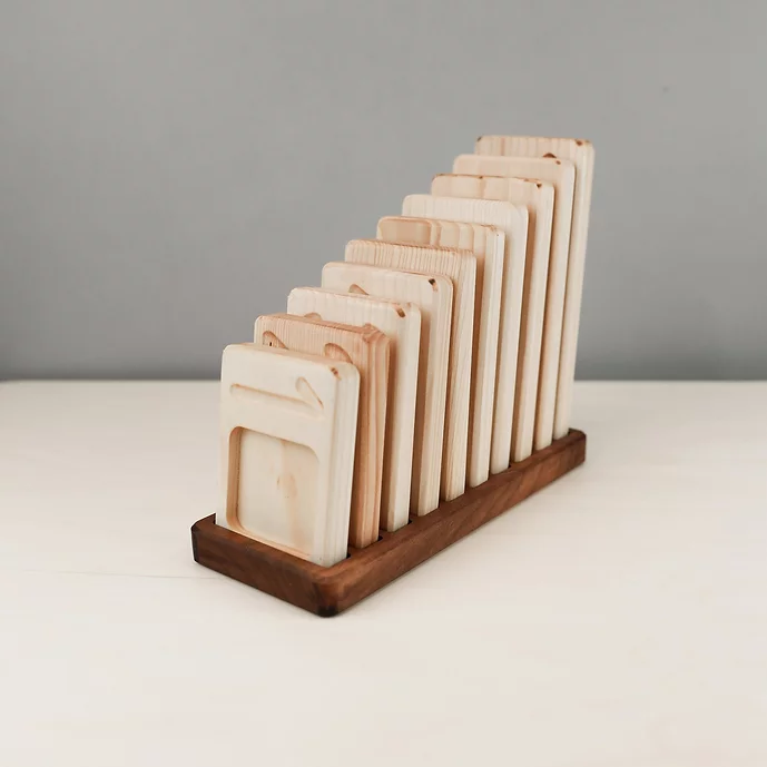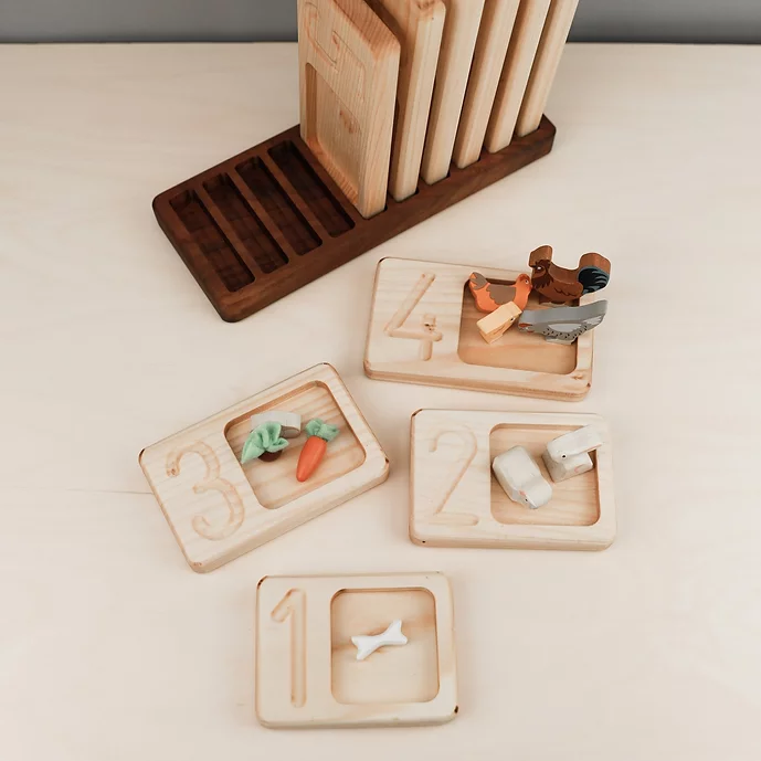 Set de 10 plateaux de comptage de tailles croissantes avec support d’encastrement. Un chiffre en soi c’est abstrait pour un enfant au début. Ce jeu, vrai support pédagogique, l’aidera non seulement à les reconnaitre, les apprendre et à les écrire, mais aussi à les ordonner en lui donnant la notion de grandeur. En effet la taille des tablettes augmente en fonction du chiffre.