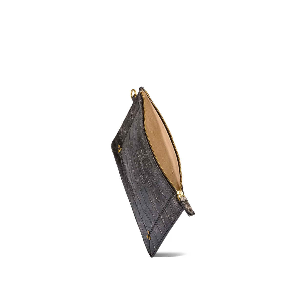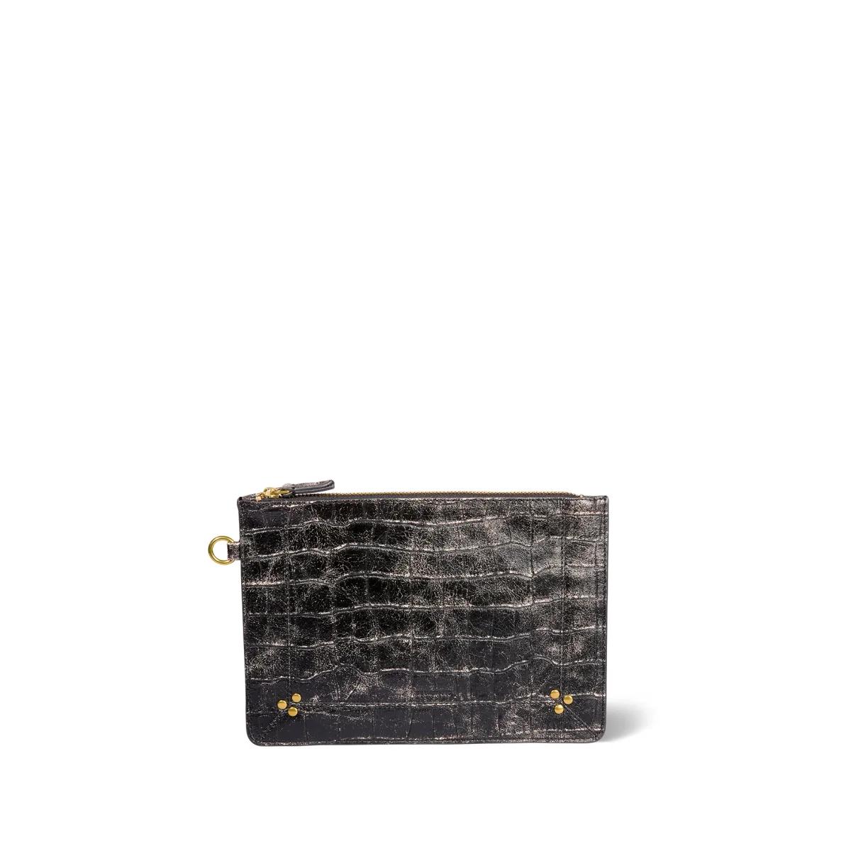 Fermeture entièrement zippée. Anneau pour l’accrocher au mousqueton présent dans les sacs de la Maison.