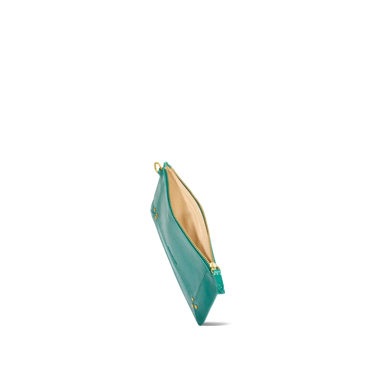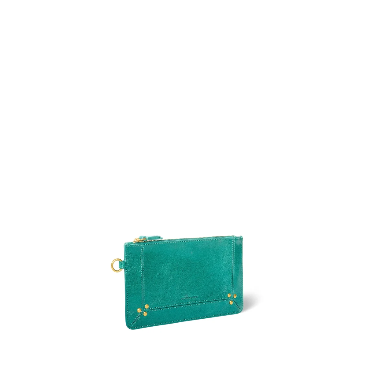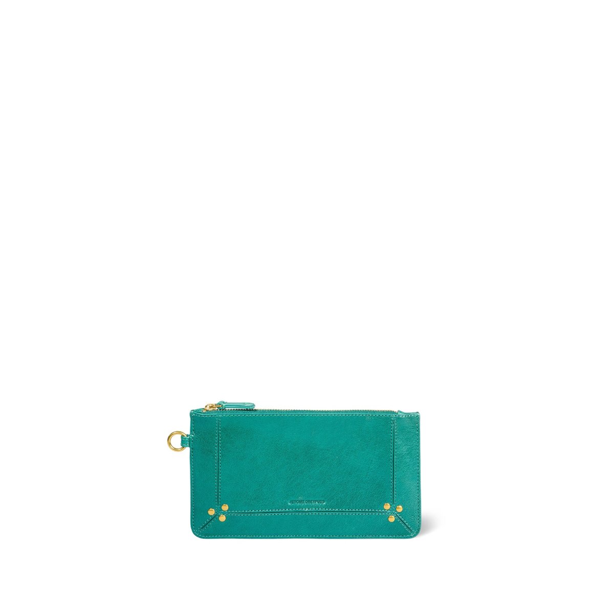 Fermeture entièrement zippée. Anneau à vis pour l’accrocher au mousqueton présent dans les sacs de la Maison.