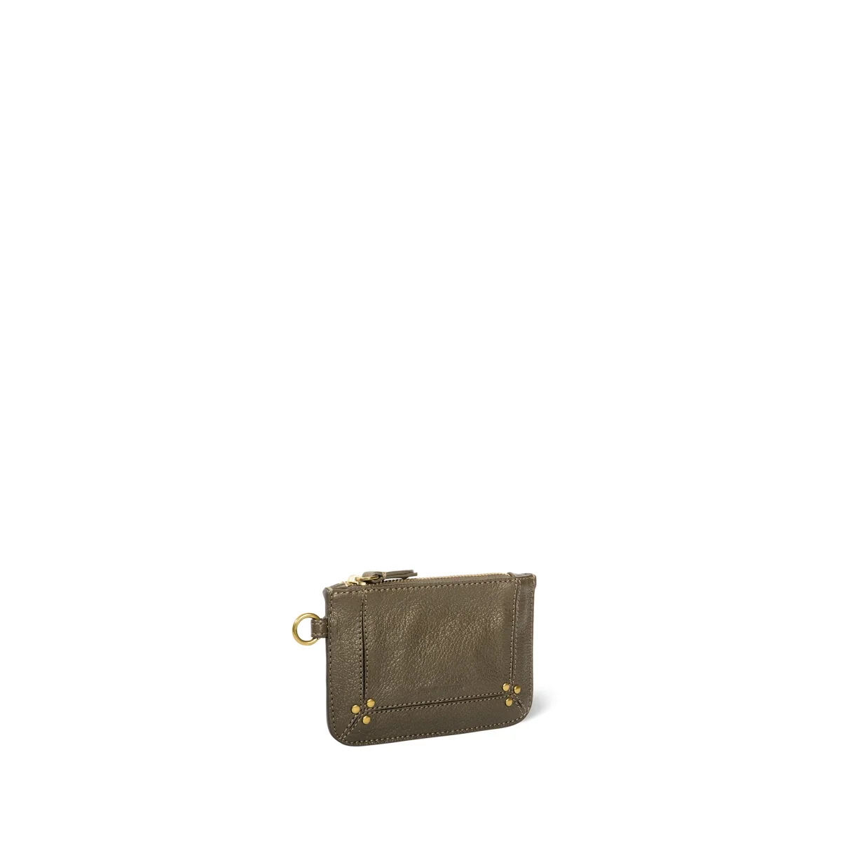 Fermeture entièrement zippée. Anneau pour l’accrocher au mousqueton présent dans les sacs de la Maison.