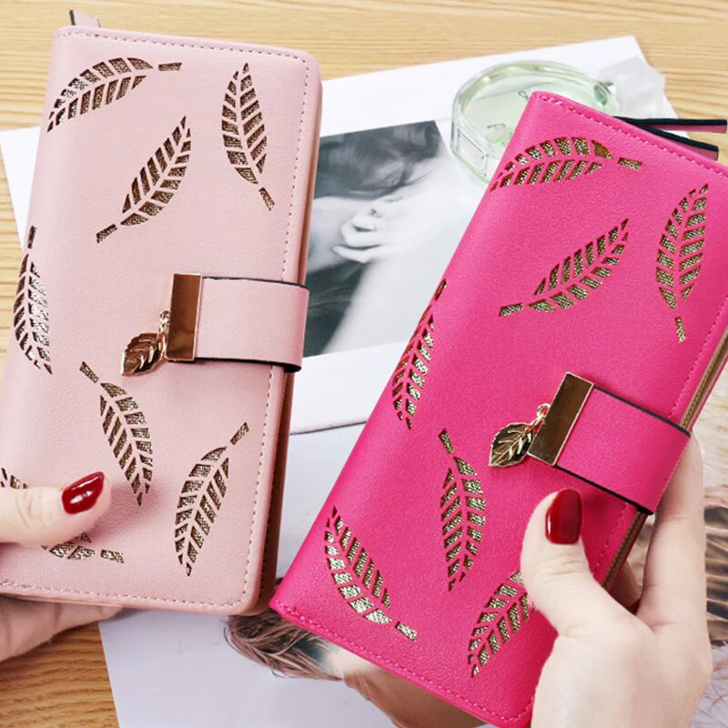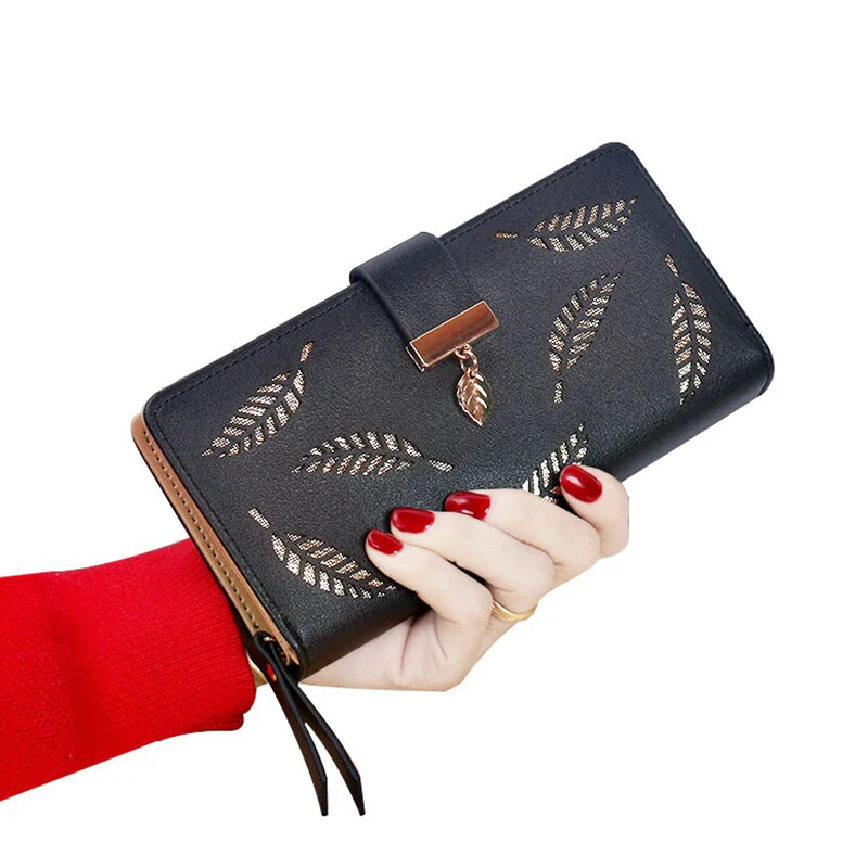 Portefeuille de Luxe à Motifs Feuilles à Creux