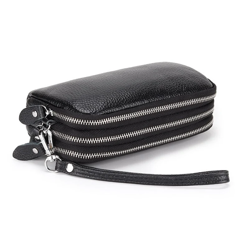 Ce Portefeuille décontracté et souple a une grande capacité. Il possède trois grands compartiments, dont chacun est fermé à l’aide d’un zip en métal.