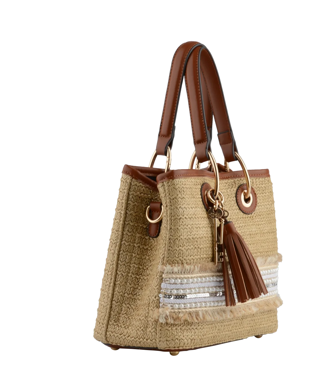 Le sac à main Prudence, en paille, allie légèreté et sophistication. Sa matière naturelle et ses lignes épurées en font un accessoire chic et intemporel, parfait pour compléter vos tenues estivales avec élégance.