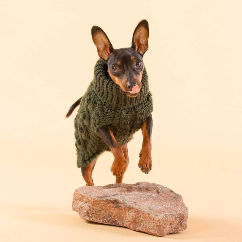 Ce pull pour chien vert kaki Paikka protégera votre poilu lors des journées froides d’hiver. Confectionné à la main, ce pull tricoté maintiendra votre chien au chaud grâce à sa matière en laine naturelle et son toucher tout doux. Un pull confortable et stylé que votre toutou ne voudra plus quitter !
