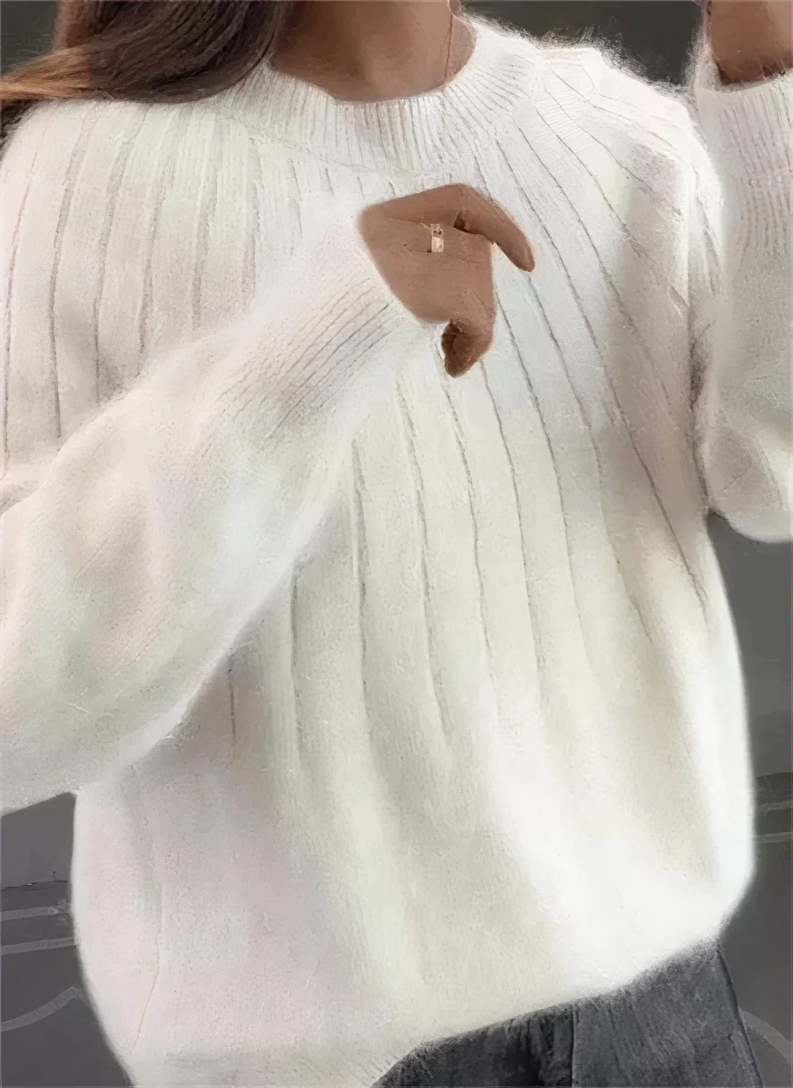 - Tricot Ultra-Doux : Fabriqué avec des fibres haut de gamme, le pull offre une texture duveteuse et agréable pour la peau, garantissant confort et chaleur tout au long de la journée.