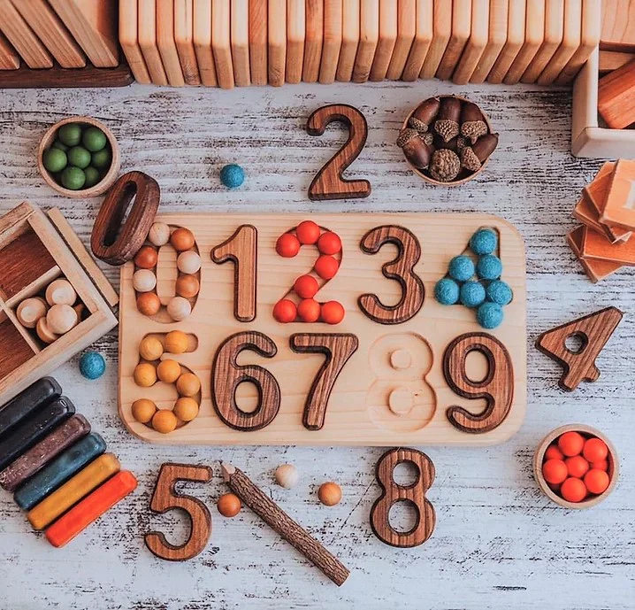 Puzzle chiffres en bois à utiliser de différentes manières pour un apprentissage ludique et créatif.