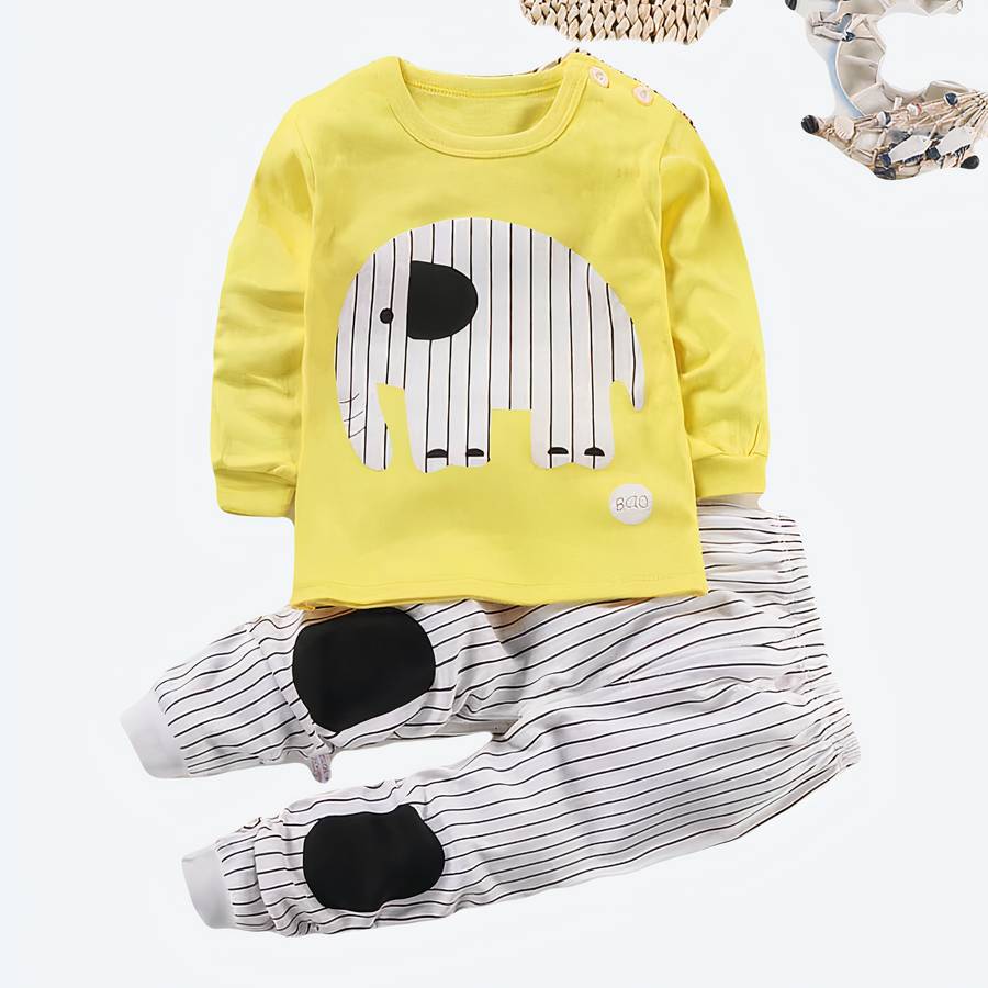 Ce pyjama rayé avec éléphant pour votre bébé lui ira comme un charme avec le motif et la couleur jaune. Votre enfant sera bien habillé et bien au chaud dans ce joli pyjama en 2 pièces. L’ensemble est muni de manchons sur les chevilles et les poignets pour que la chaleur du corps de votre enfant soit bien conservée.