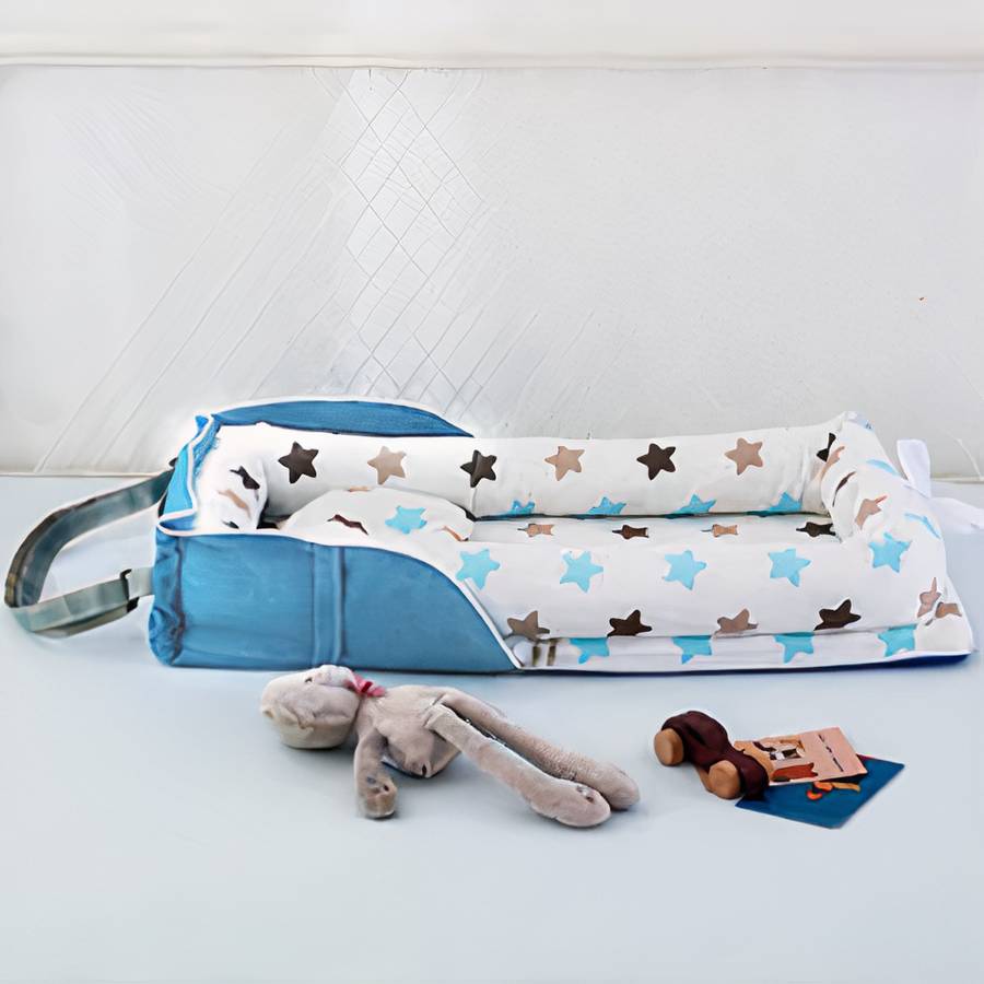 Réducteur de lit bébé pliable bleu avec étoiles