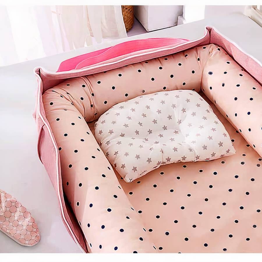 Le réducteur de lit bébé rose à pois est un accessoire pratique et confortable pour les parents et leur nouveau-né. Ce produit est conçu pour aider les bébés à se sentir en sécurité et à dormir paisiblement dans leur lit. Il est fabriqué avec des matériaux doux et respirants.