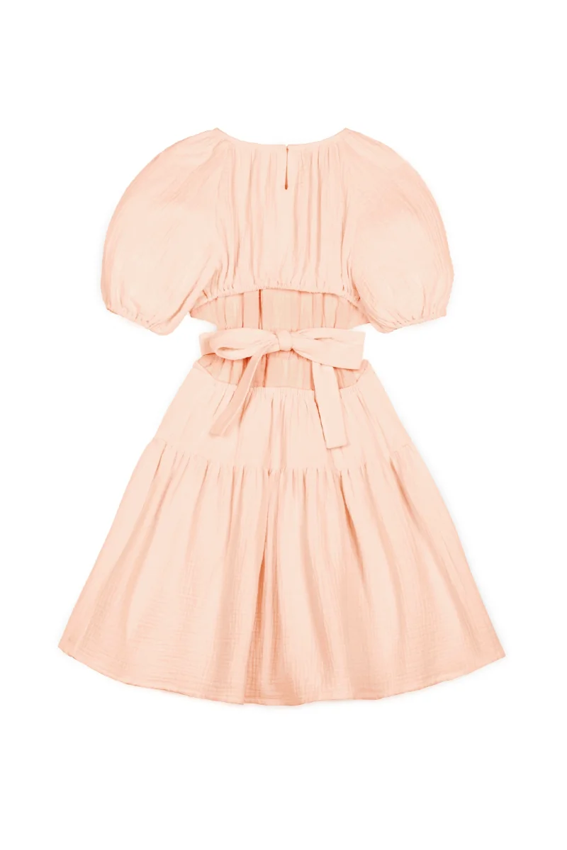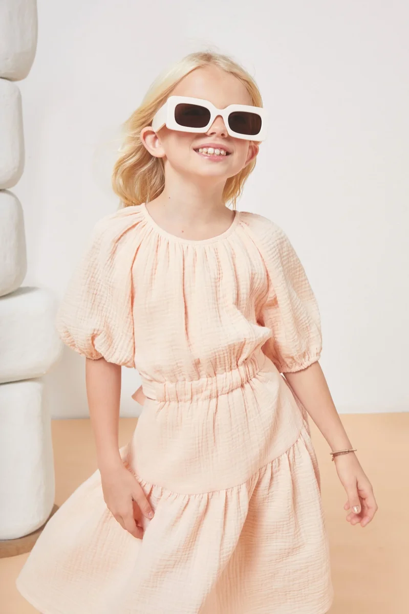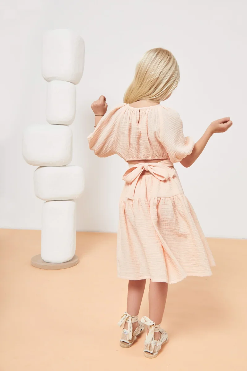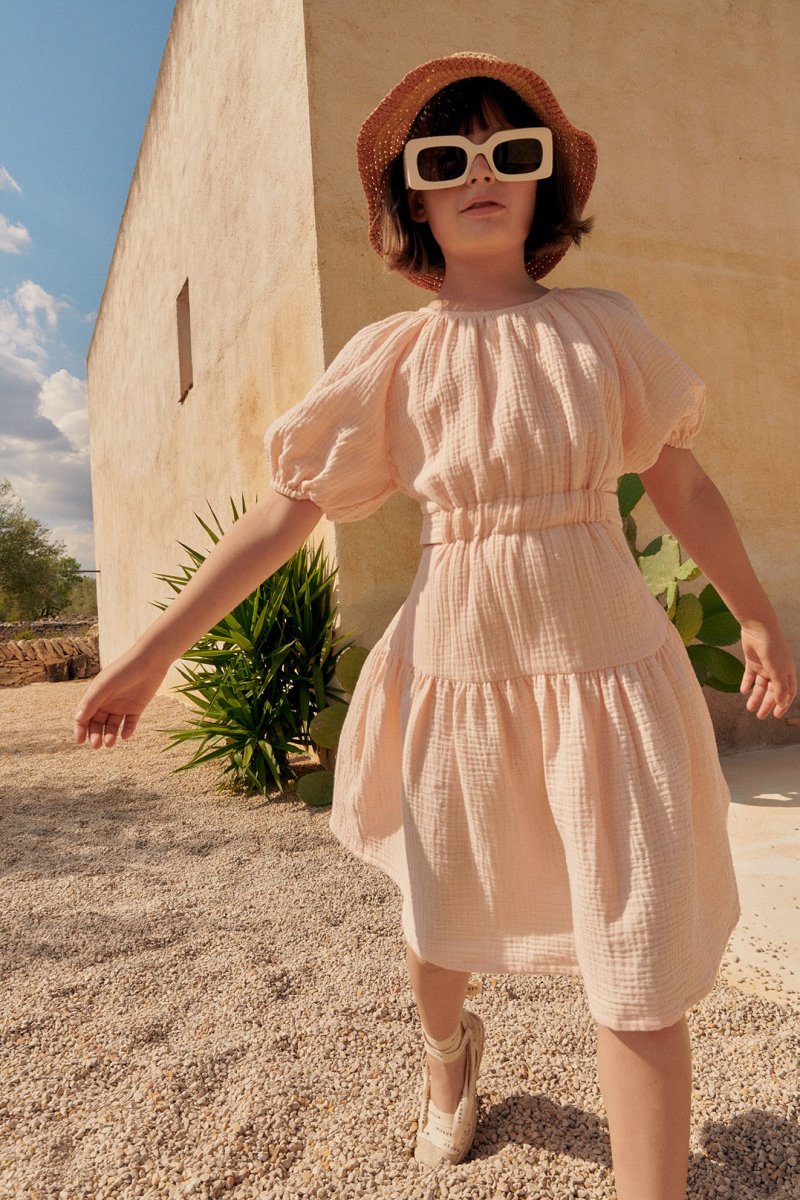 Épurée et en même temps un brin sophistiquée, la robe Marine sera surtout très agréable à porter ! Cette robe à manches courtes légèrement bouffantes est fabriquée à partir d’une mousseline de coton biologique texturée très douce. Si vous avez une fille coquette alors sa douce couleur saumon ainsi que sa coupe évasée et originale avec sa ceinture à nouer dans le dos devrait ravir votre enfant ! Un choix incroyablement confortable pour accompagner toutes sortes d’aventures.