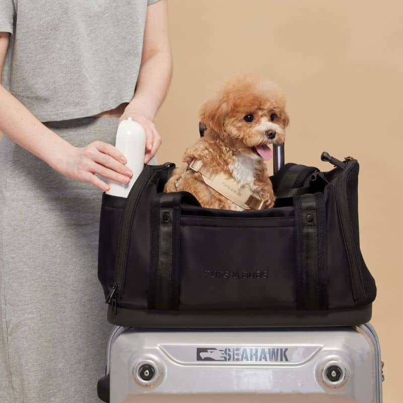 Le sac de transport « Onboard Travel Pet Carrier » pour chien et chat de la marque Pups & Bubs est parfait pour transporter les chiens et chats de moins de 6 kg et ainsi emporter votre poilu avec vous même en vacances ! Confortable, respirant et conforme aux dimensions autorisées – pensez à bien vérifier avec votre compagnie aérienne avant de voyager – il est idéal pour les voyages en avion. ✈️