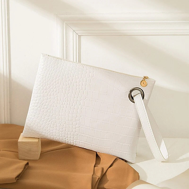 Fait en cuir mais au motif de crocodile, ce sac pochette rend fière toutes celles qui osent le porter et est parti pour faire une bonne durée de temps sans s’abimer.