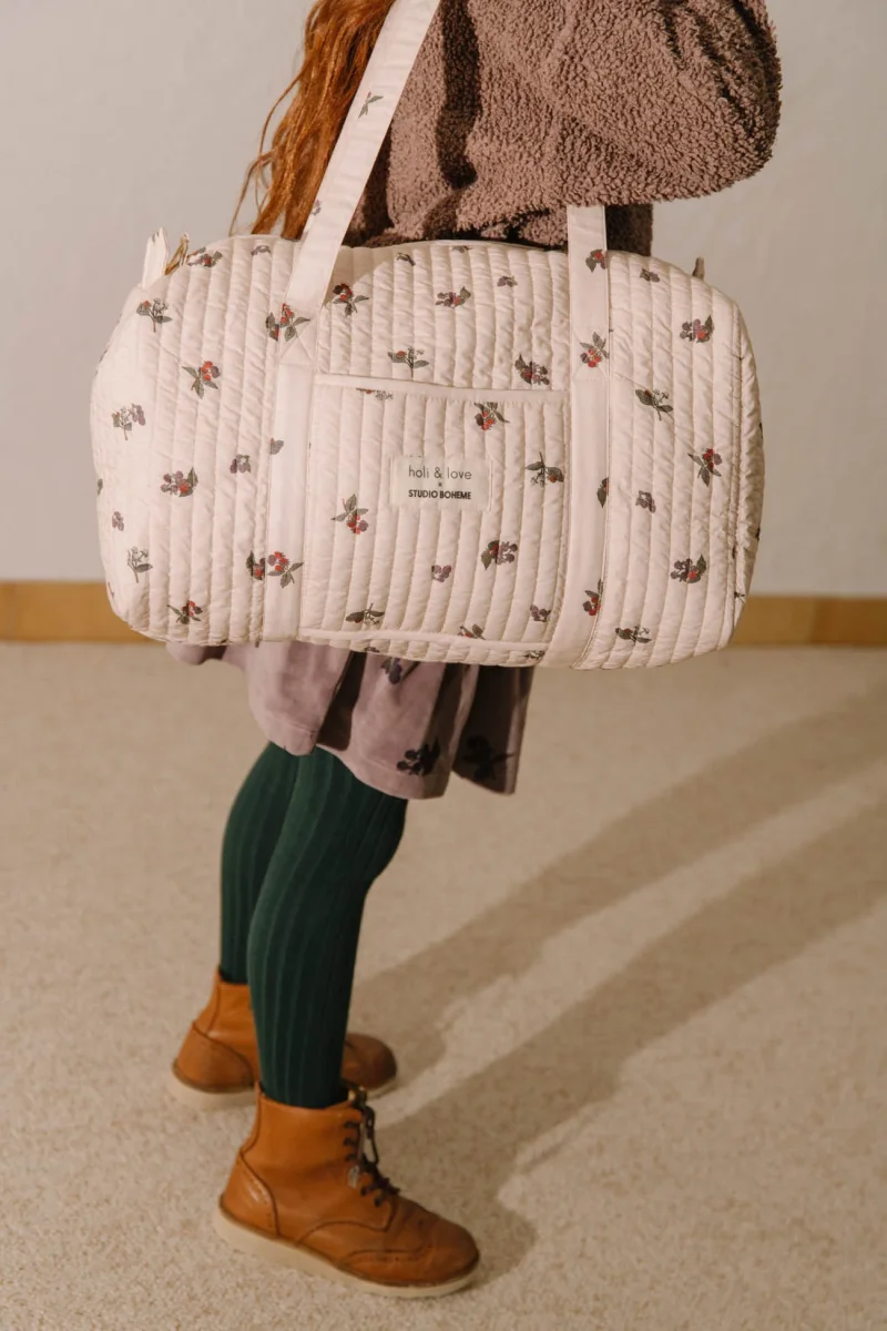 Sac Week-end Studio Bohème × Holi &Love Le sac qu’on garde longtemps, et qu’on a plaisir à offrir.Ce modèle intemporel est revisité avec notre imprimé Mûres sur un fond écru lumineux.Confectionné en coton matelassé et quilté, il allie douceur, tenue et praticité. Parfait pour les mamans en sac à langer ou pour les escapades du […]
