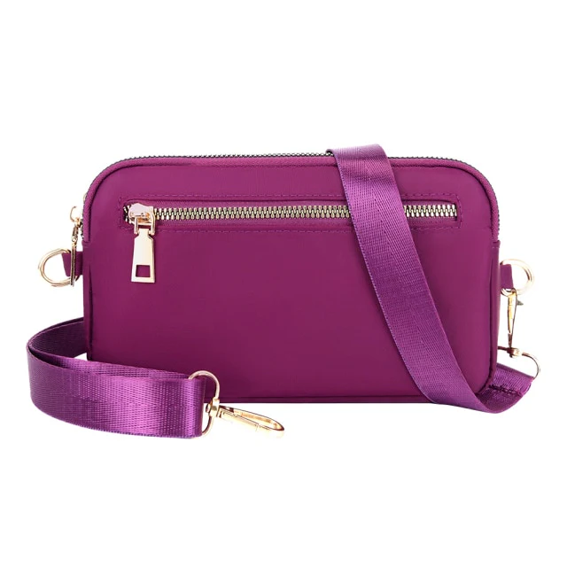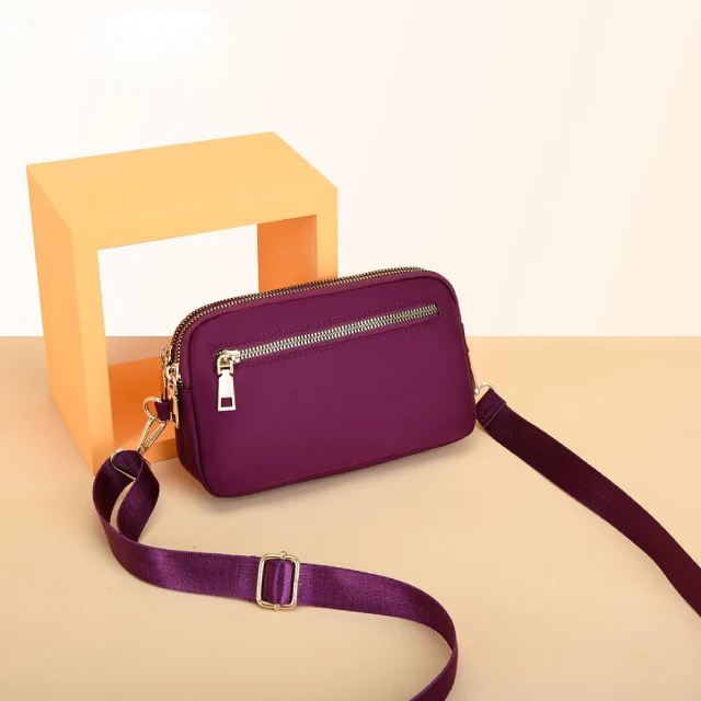 • Pour votre confort, la sangle est détachable et ajustable. C’est un sac de très bonne fabrication et robuste. Il est doté de fermetures métalliques à glissière double couche. Coloris disponibles : violet, noir, bleu, beige et rouge.
