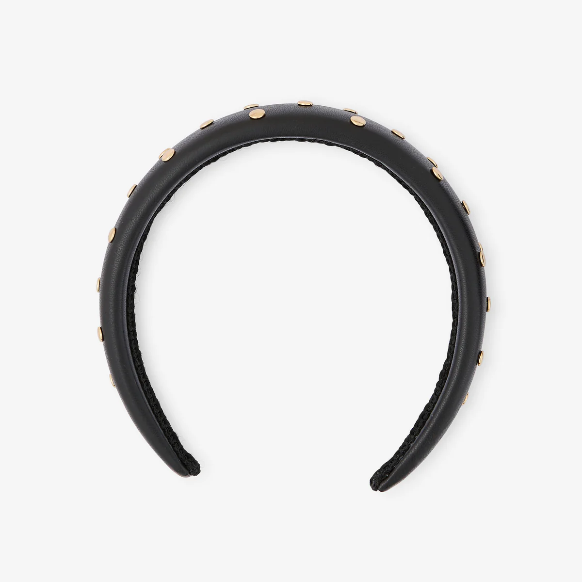 Serre-tête noir effet cuir à clous dorés