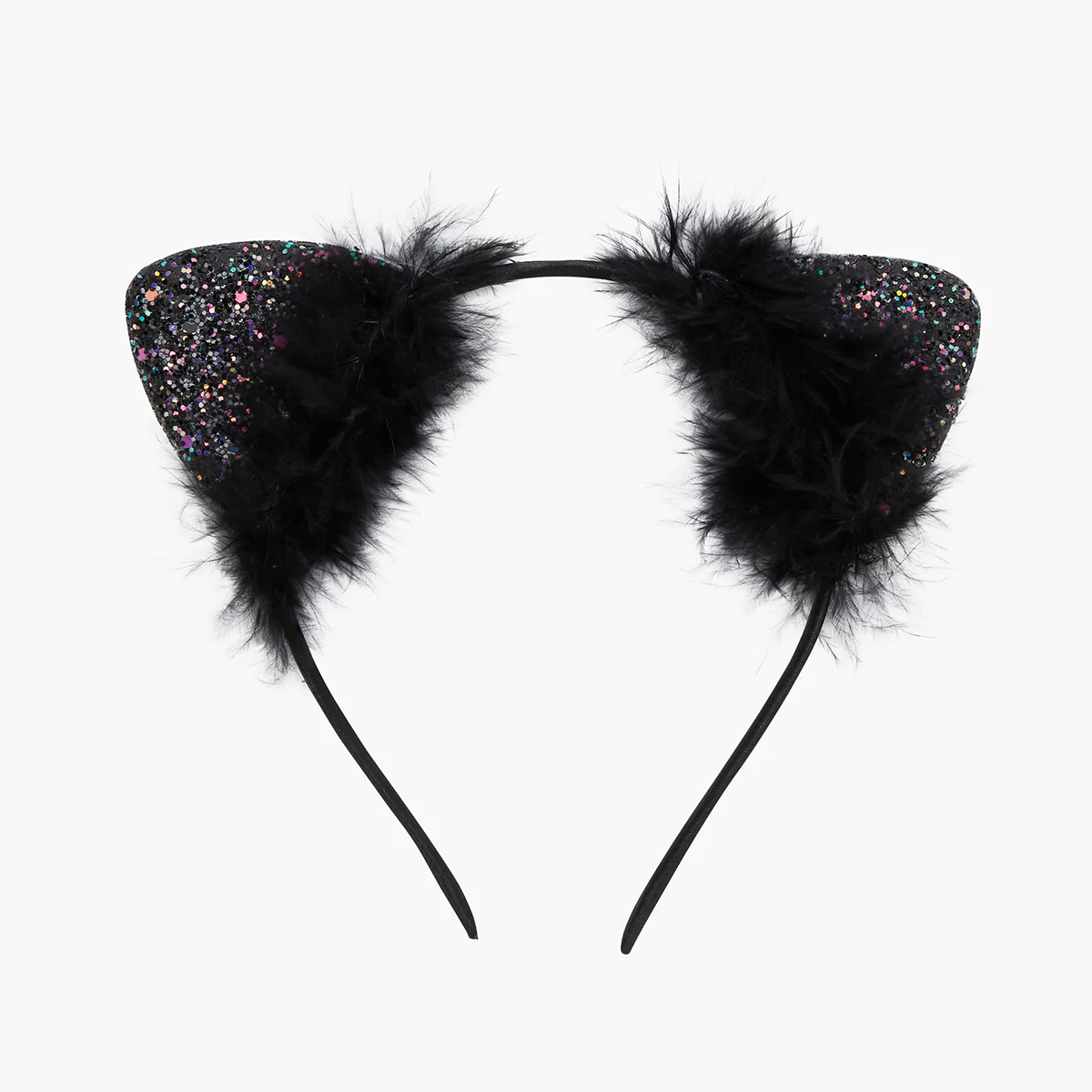 - Serre-têtes Halloween : oreilles de chat pailleté et fausse fourrure