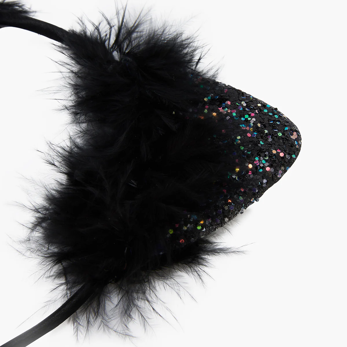 Serre-têtes Halloween : oreilles de chat pailleté et fausse fourrure Coloris : noir Matériaux : acrylique et polyester