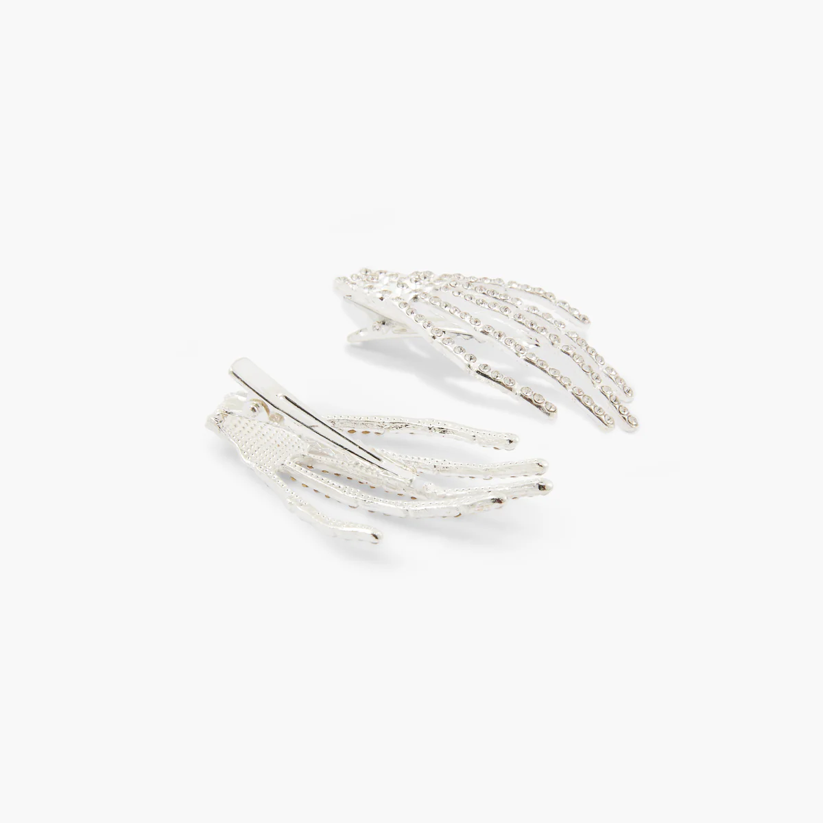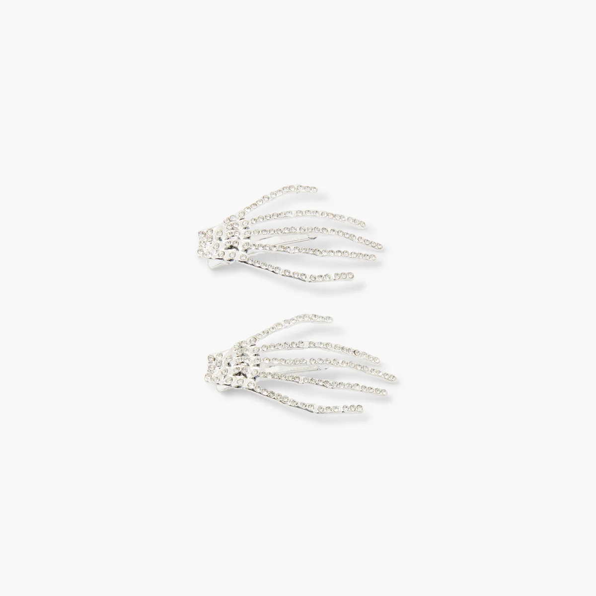 Set de 2 pinces Halloween en forme de mains de squelette à strass Coloris : argenté Matériaux : zinc, fer, verre Dimensions : 6,4 x 3,8 cm