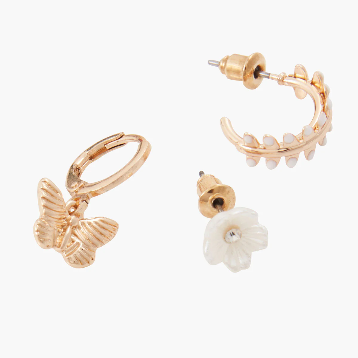 Set de 3 boucles d’oreilles créole, papillon et fleur qui ajouteront une touche de style à votre look !
