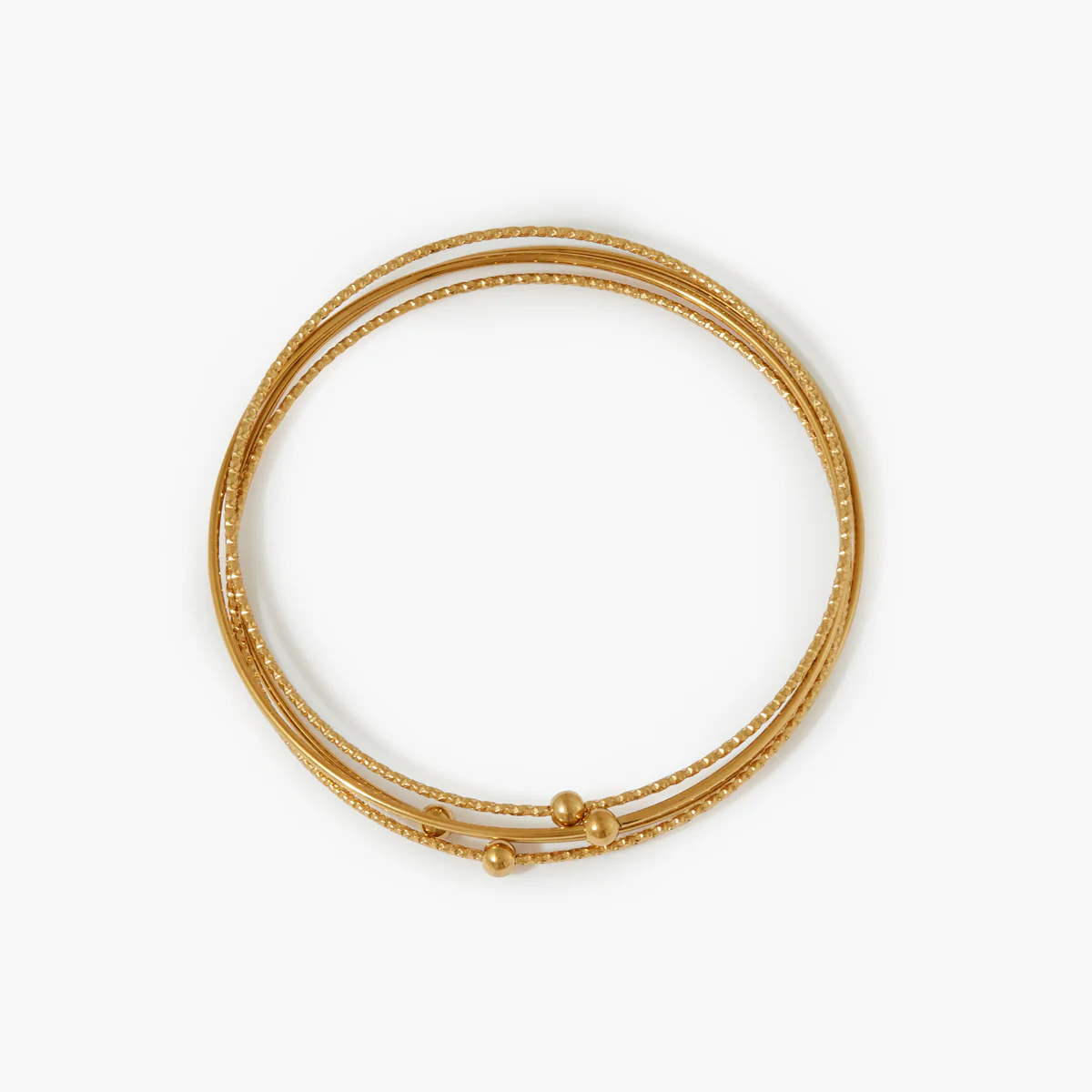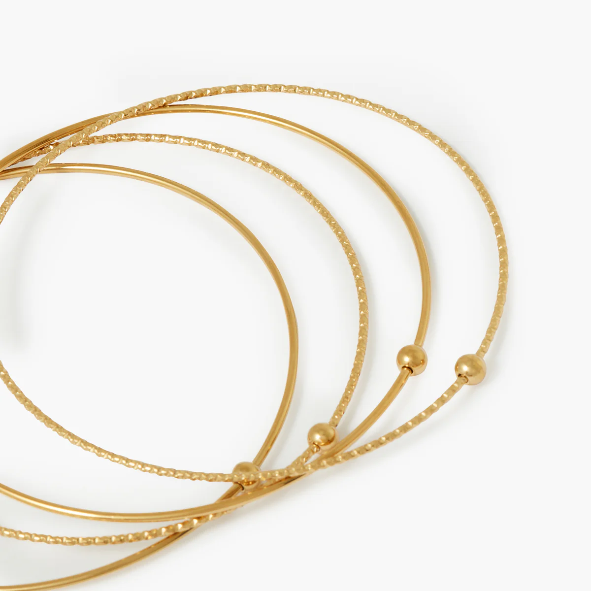 Set de 4 joncs fins Coloris : doré Matériau : acier inoxydable Diamètre : 6,5 cm L’acier inoxydable est un matériau durable, résistant à l’usure, à la corrosion et aux rayures. Parfait pour un usage quotidien, il offre une brillance longue durée et nécessite peu d’entretien. Il est hypoallergénique et facile à nettoyer.