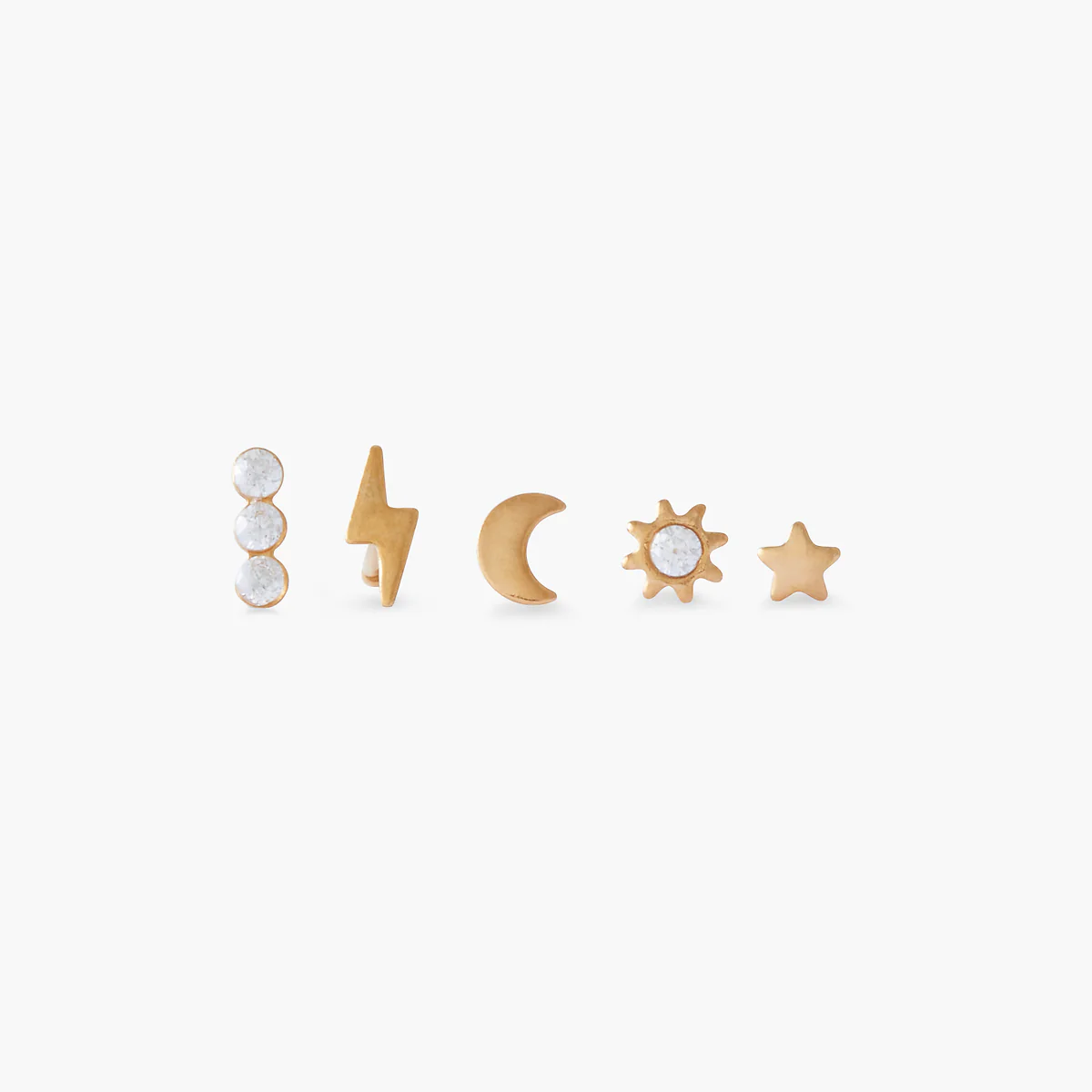 - Set de 5 piercings studs assortis pour le nez : strass, éclair, lune, soleil, étoile
