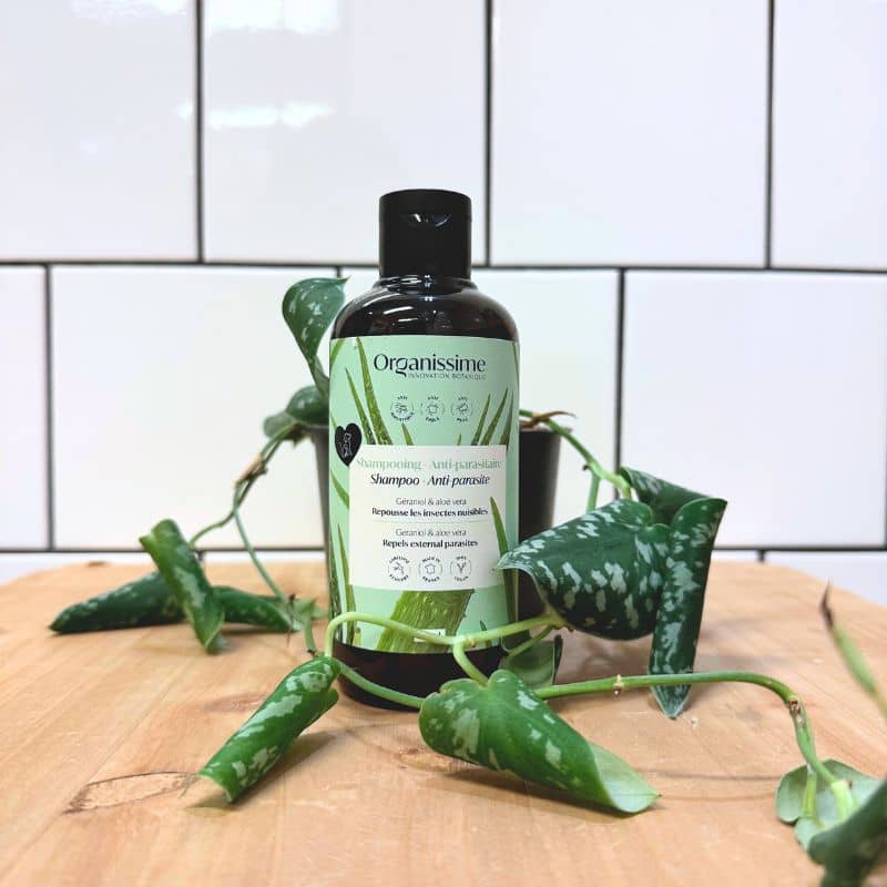 Ce shampoing antiparasitaire pour chien Organissime by Biogance, certifié Ecocert, est formulé à base d’aloe vera et de géraniol, un insectifuge naturel permettant de repousser tiques et puces.