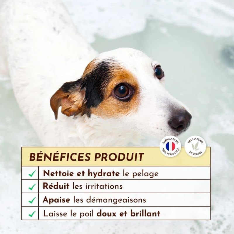 Ce shampoing lave naturellement et efficacement les chiens les plus sensibles aux peaux atopiques.