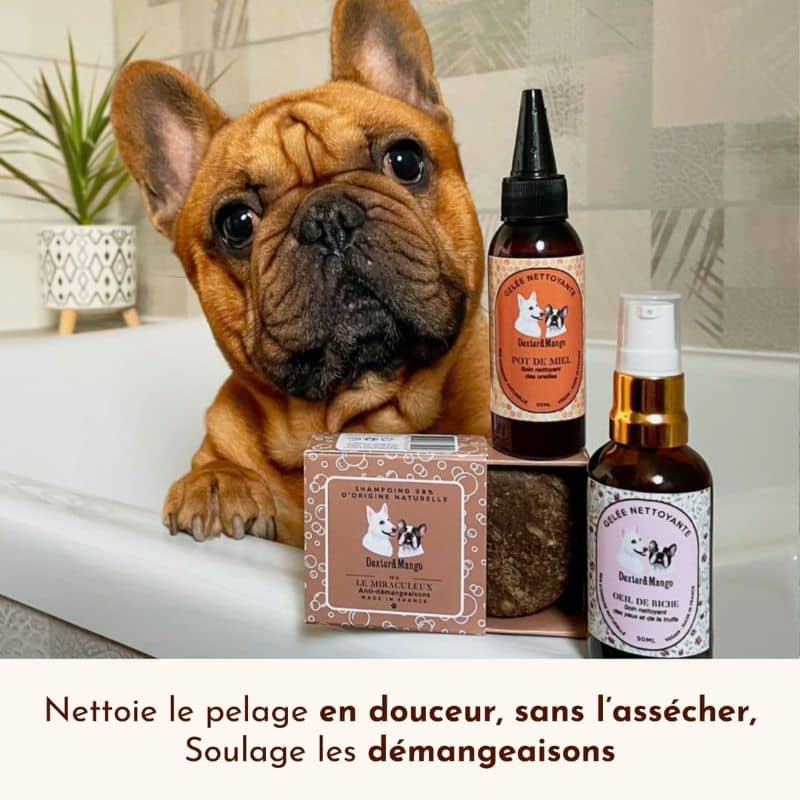 Pour soulager encore plus votre toutou des démangeaisons et autres irritations qui l’embêtent, complétez avec le baume Le Miraculeux de Dexter & Mango.