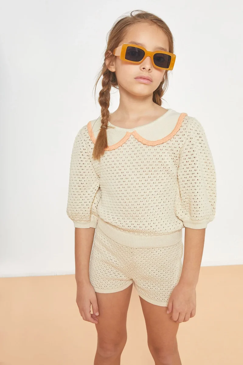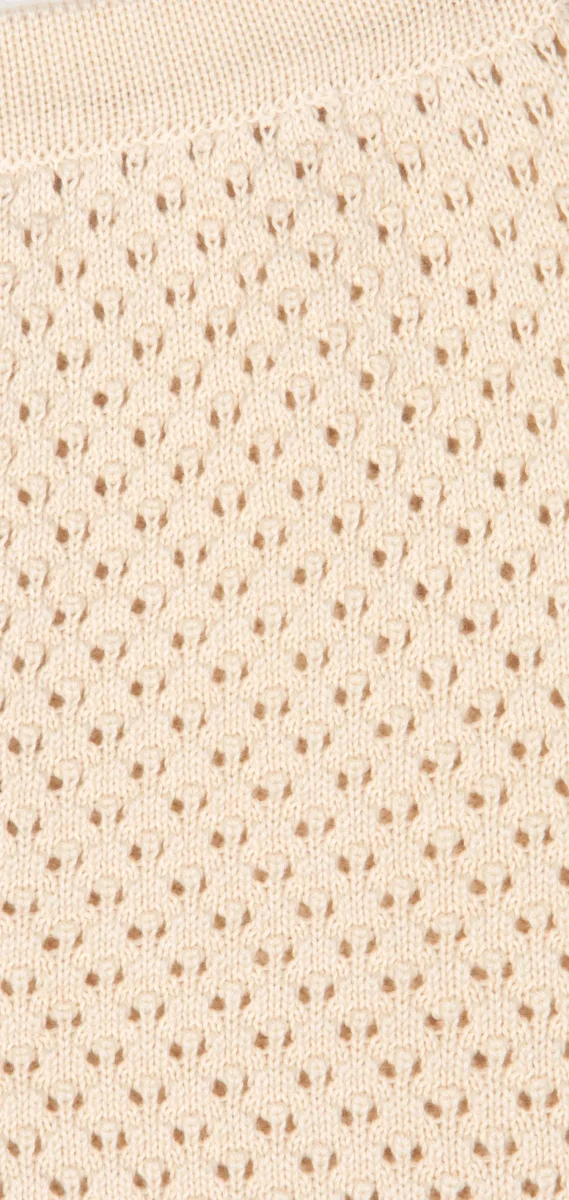 Hyper confortable avec sa taille élastique, le short ajouré Carola en maille légère crème est juste magnifique et idéal pour la saison estivale. Look canon garanti avec nos pulls Carola crème caramel ou pêche.