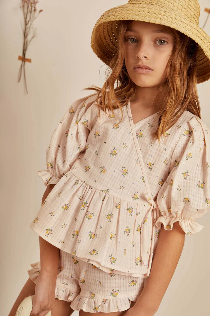 Le short Suzanne est d’un chic avec son imprimé floral aéré posé sur un fond quadrillé tissé avec subtilité ! Une pièce épurée qui deviendra vite un indispensable de la garde-robe d’été de votre enfant. Ses volants au niveau des ourlets lui donnent encore plus de charme. En coton 100 % biologique, il est très agréable à porter avec sa taille élastique et son tissu fluide. Pour un look complet, conjuguez le avec la blouse assortie Suzanne en cache-cœur.