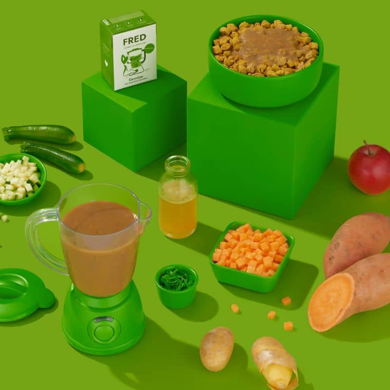 Tout commence en 2016 avec Jeannie – le labrador de Beate et Tobi, les deux fondateurs : très vite, elle développe des problèmes de peau et malgré croquettes de véto et traitement, seule l’alimentation maison entraine de véritables améliorations. C’est donc en cuisinant pour leur chien que née la marque Mr Fred… devenue Fred & Felia en 2022 suite au développement de recettes adaptées aux chats.